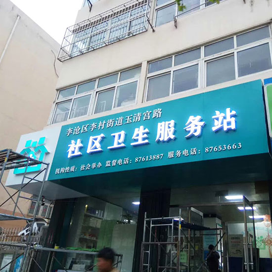 青島街道社區(qū)衛(wèi)生服務站門頭招牌制作安裝亞克力發(fā)光字制作安裝,門頭設計對于商家的經(jīng)營能起到非常重要的作用。在進行門頭設計時,應符合當?shù)氐臍夂驐l件、民俗習慣、磁向方位等要求,并能顯示出商家的獨特標志或特色。優(yōu)秀的門頭外觀本身就是一種宣傳、標志和象征,所以一些特殊外觀模式,對于其經(jīng)營是有正面意義的。在外觀設計上,應注意以下兩個方面。