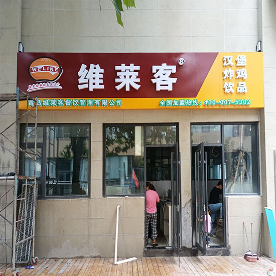 鋁塑板:這是一種由鋁和密度較小的塑料芯材復(fù)合而成的材料,具有質(zhì)量小、剛性好、不易變形、顏色豐富、裝飾性強(qiáng)等特點(diǎn)。鋁塑板門頭表面平整,色彩豐富,安裝方便,可以安裝各種發(fā)光字,因此被廣泛應(yīng)用于各種門頭制作中。
